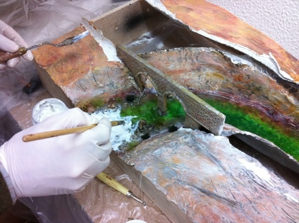 Trabajos con espátula y aplicadores para modelar el agua