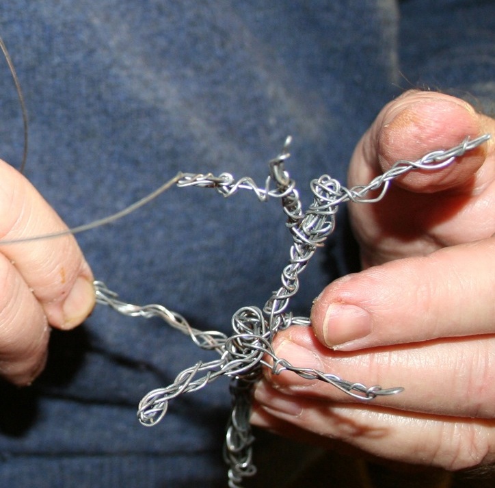 Partiendo de alambre fino (normal o cobre), este lo trenzamos componiendo así el tronco y las ramas, es decir estamos formando el esqueleto de nuestro árbol a escala.