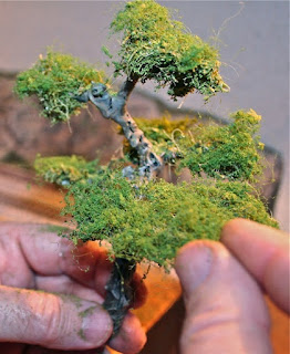 Arbol ya terminado, se ha conseguido un conjunto con un interesante nivel de detalle. La paciencia un poquito de precisión, algo de practica observación de nuestro entorno natural y por supuesto interés e ilusión, bastaran para conseguir pequeñas obras de arte.