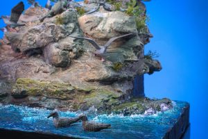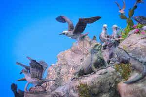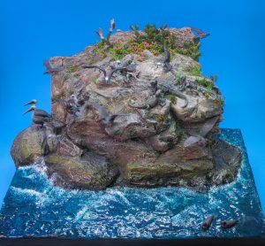 Presento aquí uno de mis últimos proyectos ya totalmente terminado “La isla de los pájaros” un bello diorama en el que trato de representar la diversidad de la fauna y flora en un peñón de las extraordinarias Islas Galápagos (Ecuador). Una propuesta a escala 1:24 (75 mm) en la que intento llenar de vida, movimiento armonia y color. En este emplazamiento las figuras en resina a perfecta escala se mezclan a la perfección en su hábitat, sin duda roca y mar son su hogar. Texturas y pintura marcan el paso de esta obra; escayolas, geles, pigmentos, color… en el que la perspectiva, el estudio y por supuesto el arte hacen de este conjunto un apunte único..
