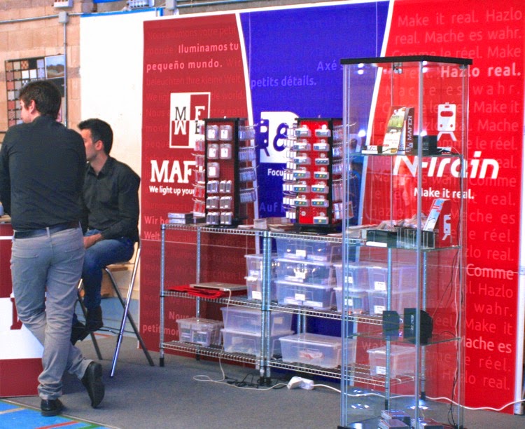 …también tuvieron representación la revista Mastren importante publicación tanto a nivel Nacional como Internacional dedicada en exclusiva al modelismo ferroviario, Acrílicos Vallejo con una extensa gama de pinturas de gran calidad y derivados muy interesante para nuestras maquetas y Mafen, este ultimo es un fabricante artesanal principalmente de señalización luminosa Renfe y catenaria, sin duda un honor poder contar con todos ellos.