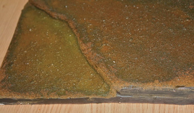 Efecto de la resina ya depositada de forma correcta sobre la superficie tratada. Hay que dejarla secar entre 18 y 24 horas, siempre capas finas, podremos añadir, como decía anteriormente, cuantas capas nos interese siempre dejando secar unas y otras.