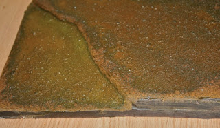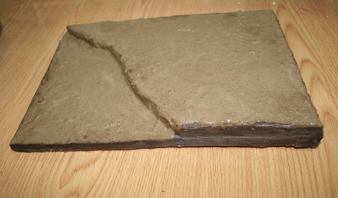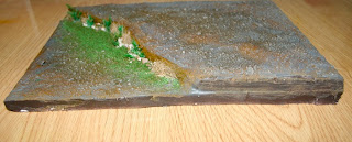 Hay que preparar la base que vamos a modelar/trabajar, en este caso voy a realizar a modo de ejemplo una base de terreno con su agua, para ello dispongo de unas planchas de polyespan de aproximadamente 1 cm. de espesor las cuales e superpuesto una sobre otra y preparandolas de la forma adecuada para la elaboración del lecho sobre el que dispondré el agua. Estas planchas o base ya preparada deben cubrirse de pasta o masillas, ver imagen, para que formen el cuerpo y textura adecuados para los pasos y aplicaciones  que vendrán.