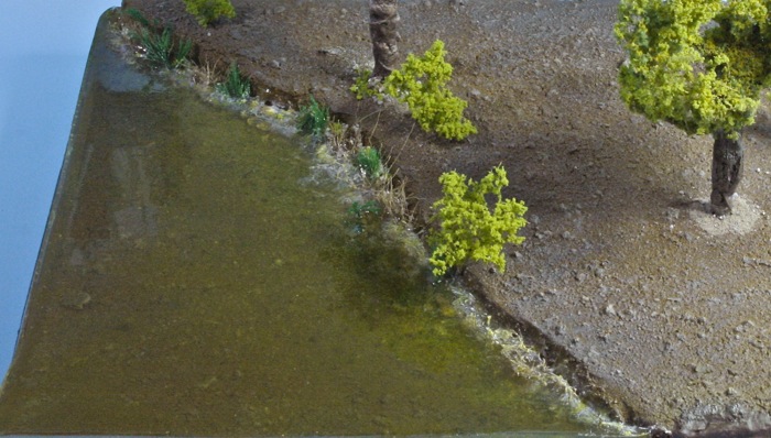 Intento transmitir detalles de la pieza ya acabada, agua, tierra y por que no algún árbol. Enriquecer nuestros dioramas o maquetas y darles acabados en consecuencia será nuestra razón de ser. Por cierto pido disculpas por algún reflejo que haya quedado en la instantánea presentada a consecuencia de la correspondiente fotografía.