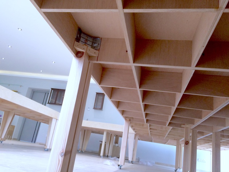 El diseño y la estructura será el primer paso y por ello lo deberemos realizar con sumo cuidado esto será crucial para el perfecto desarrollo de lo que vamos a realizar. La estructura base de 8 m. x 5 m. x 7 m. modular se ha decidido hacer en madera de contrachapado y fenólicas de dos centímetros de espesor y perfectamente reforzadas en su parte inferior, una cuadrícula que asentará a la perfección los planos horizontales y facilitará el cableado.