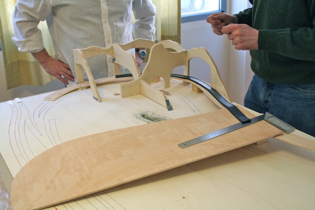 Cortada la pieza que sustentara nuestra vía en rampa, la presentamos, comprobamos su perfecta ubicación, el plano será una estupenda herramienta de comprobación, ver imagen.