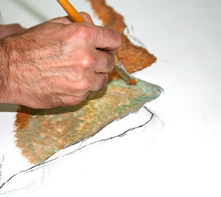 Elegido el motivo y habiendo realizado un pequeño boceto del mismo a lápiz o carboncillo sobre una superficie plana, en este caso una plancha de madera con las dimensiones adecuadas y a la que hemos dado imprimación blanca (mejor por ambas caras para que no se deforme) empezamos a pintar dicho motivo, las pinturas acrílicas son las que irán mejor.
