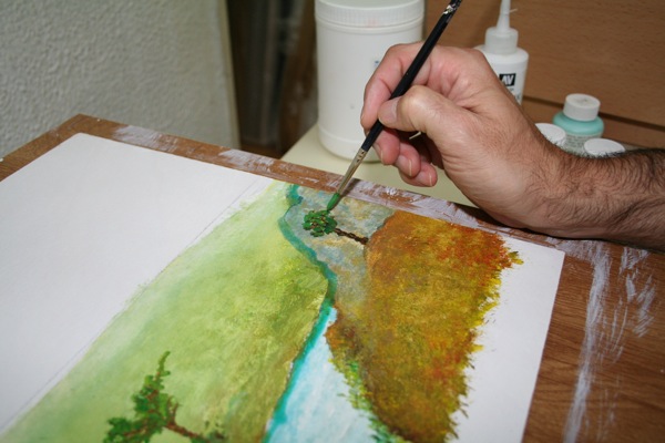 Comprobado lo anterior, es decir, nos gusta como va quedando en su conjunto el encuadre, la perspectiva, seguimos con la pintura, como es lógico esta pintura será utilizada en la cantidad adecuada y la paleta de colores será la que corresponda al entorno elegido.