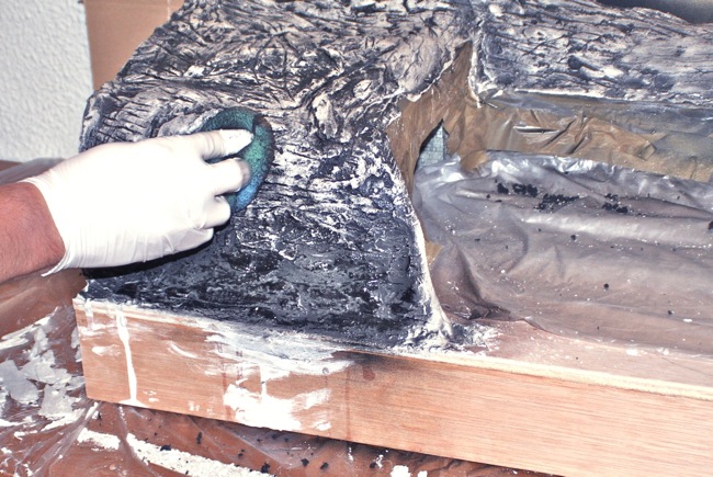 Una vez superada la fase “pictórica” vamos integrando nuestro túnel en el resto de la estructura, es decir, el entorno, para ello seria interesante texturizar los planos horizontales que sustentan el bloque (conjunto del túnel), esta textura que puede ser a base de gravas, sedimentos, cola… nos facilitará la visión general y nos ayudara en esta labor dejando el conjunto perfectamente preparado para labores posteriores.